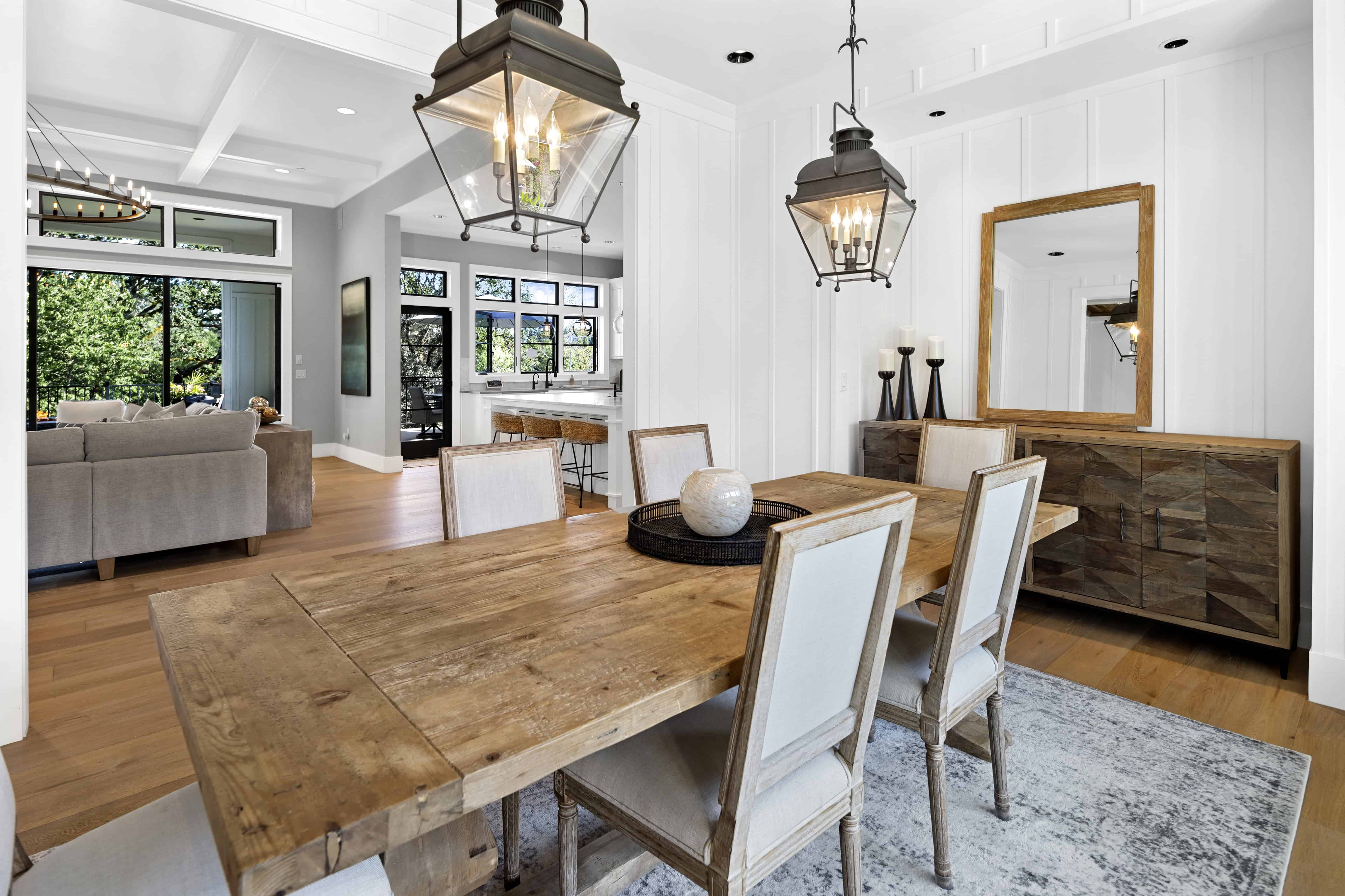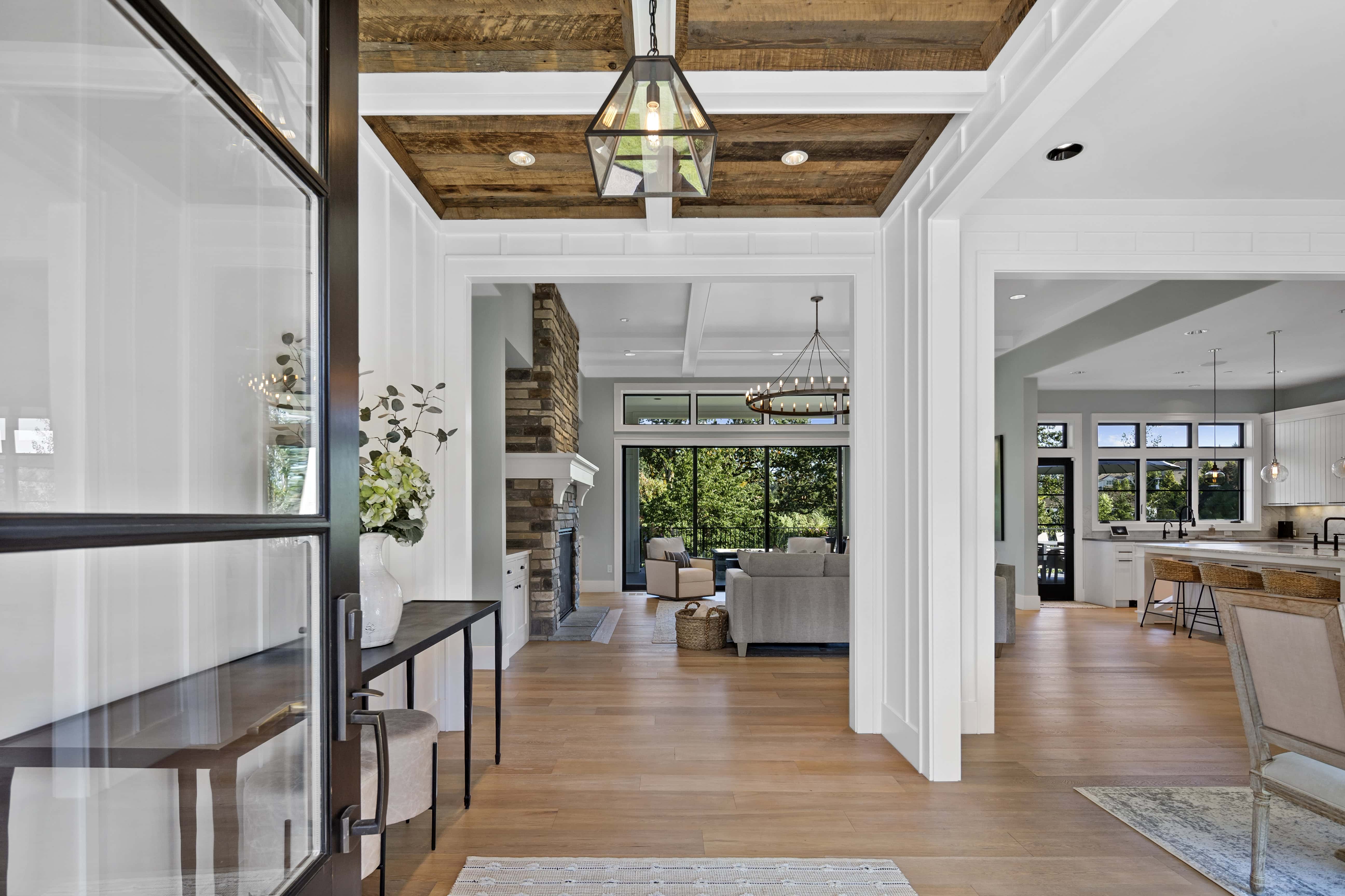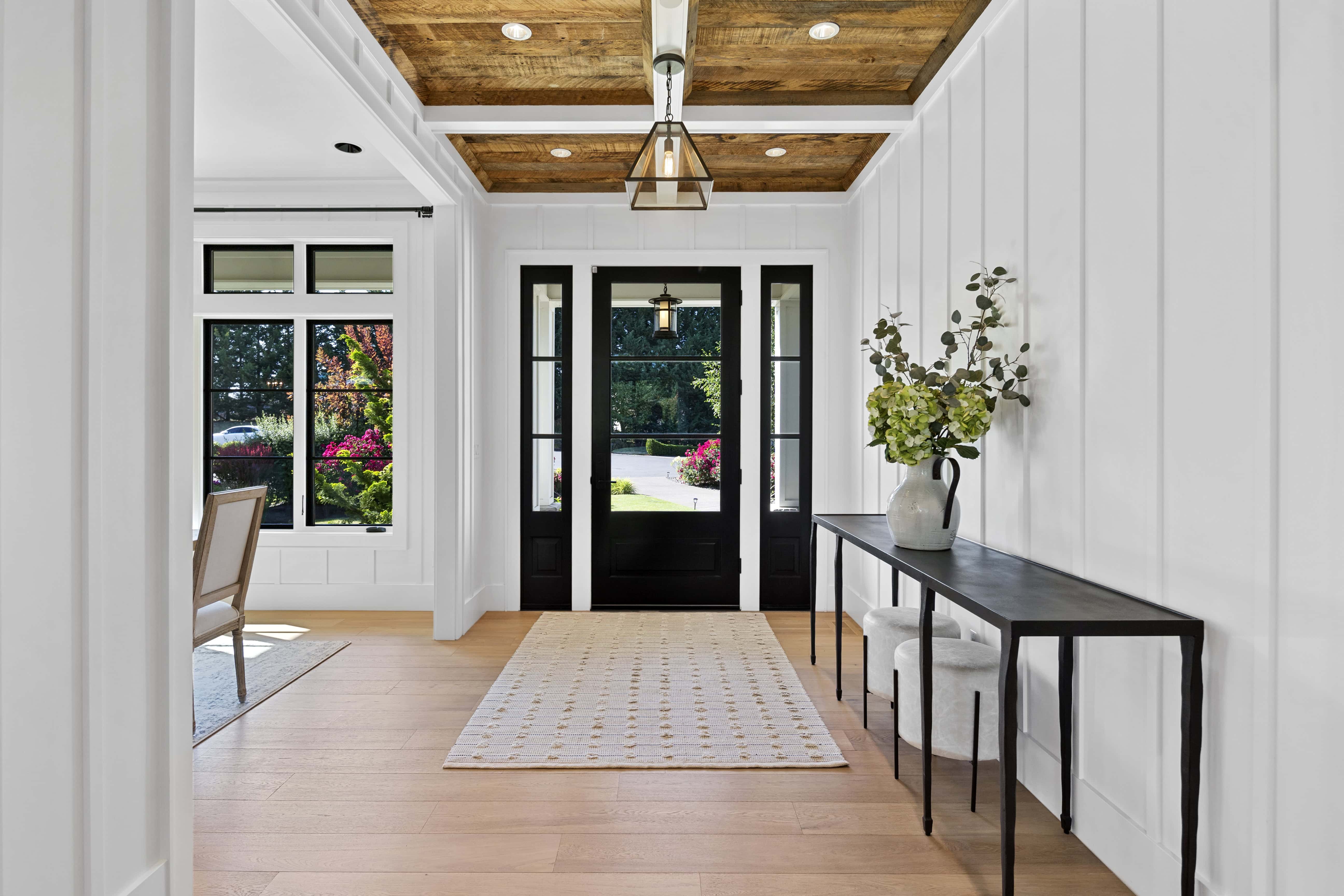 Stylish, thoughtful design is evident throughout, from wide-plank wood flooring to coffered ceilings to timeless board and batten wainscoting.