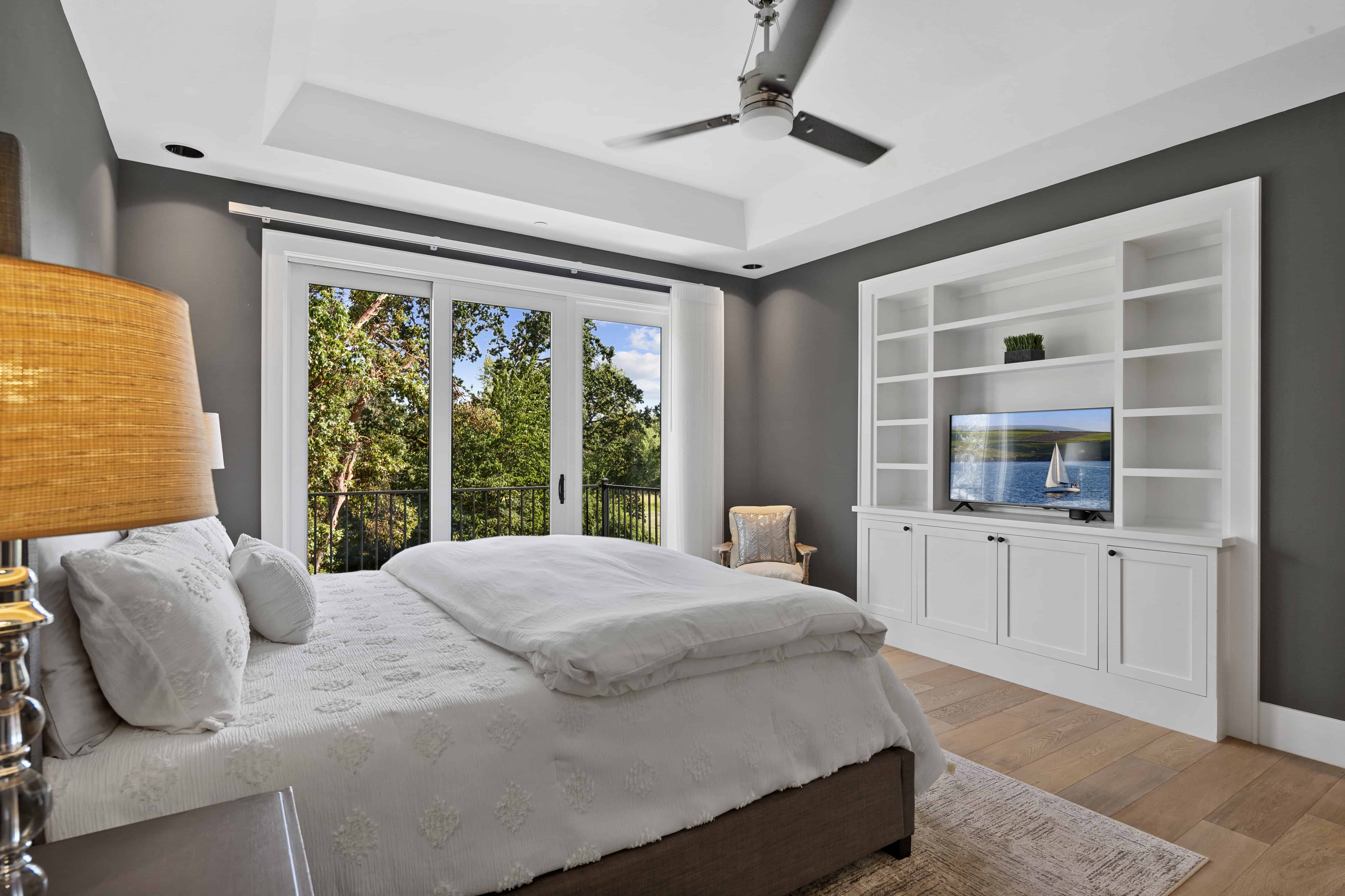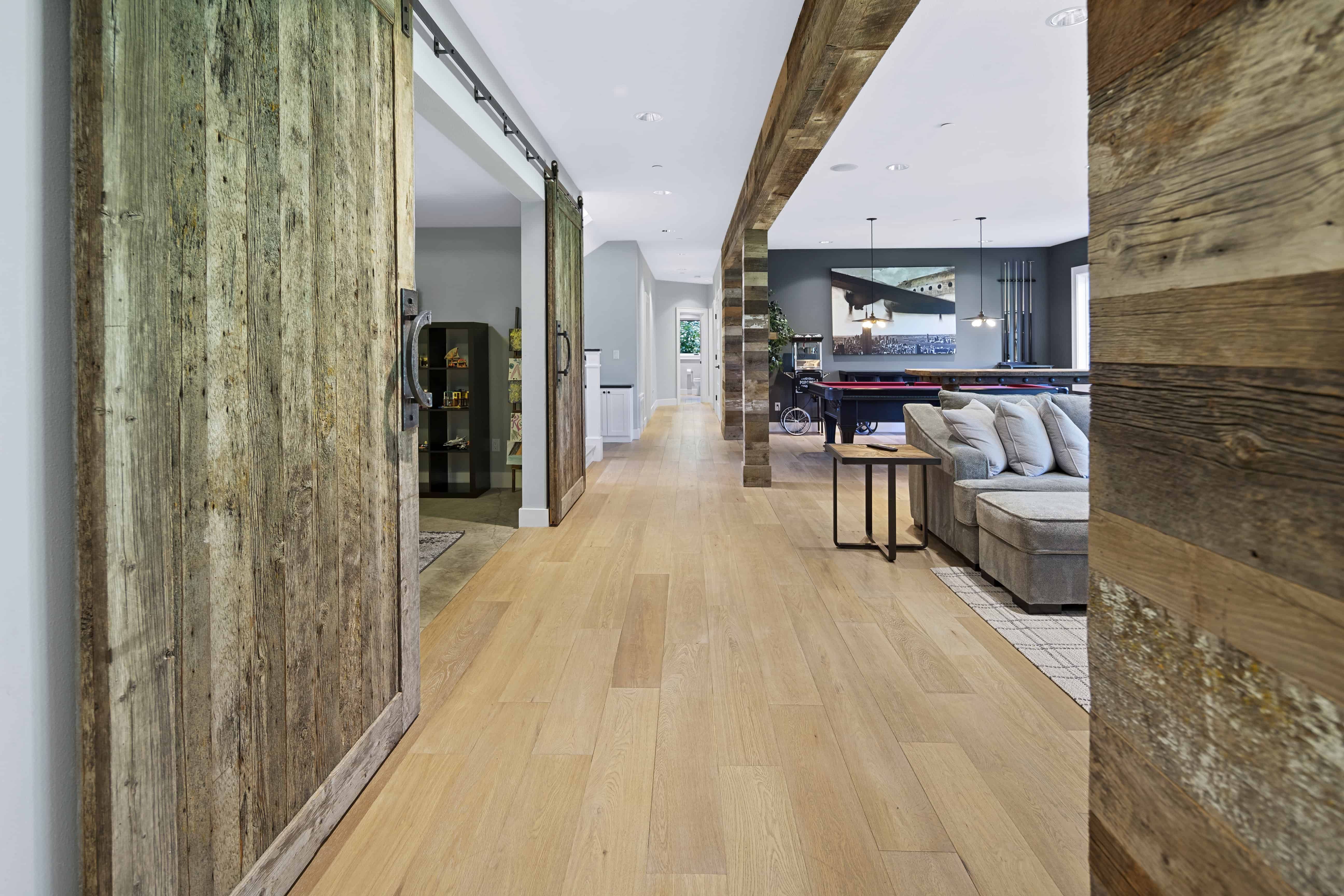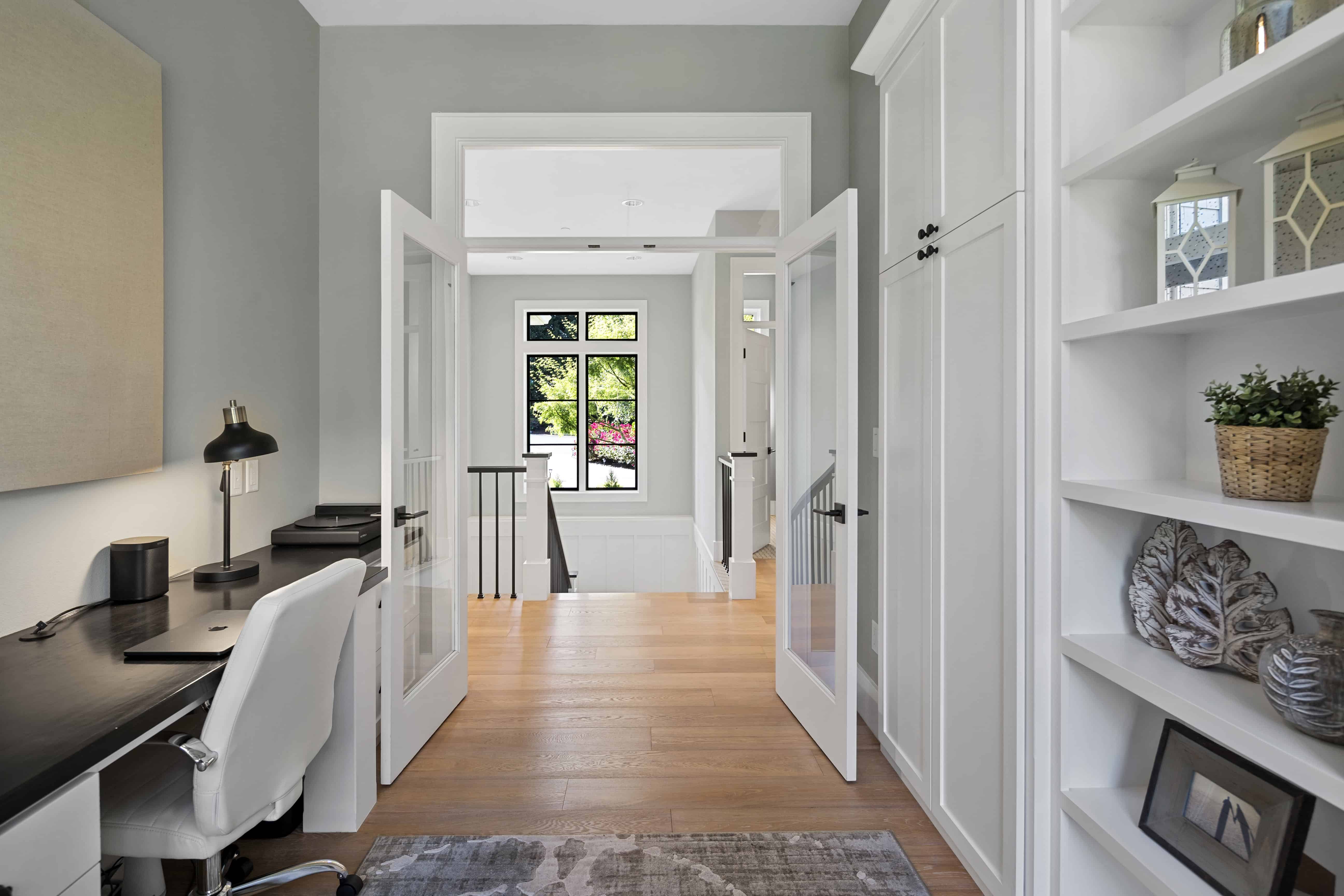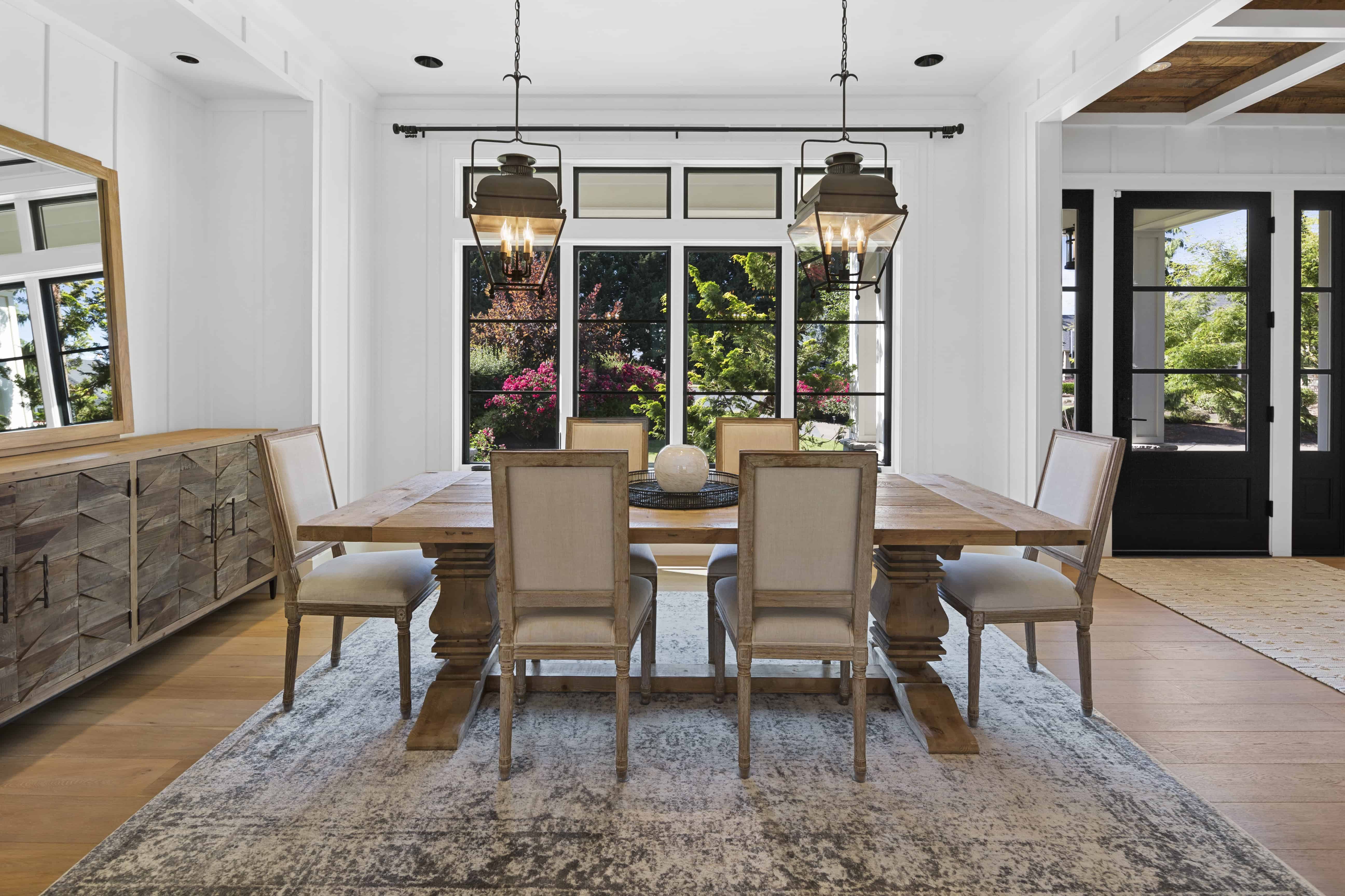 Stylish, thoughtful design is evident throughout, from wide-plank wood flooring to coffered ceilings to timeless board and batten wainscoting.