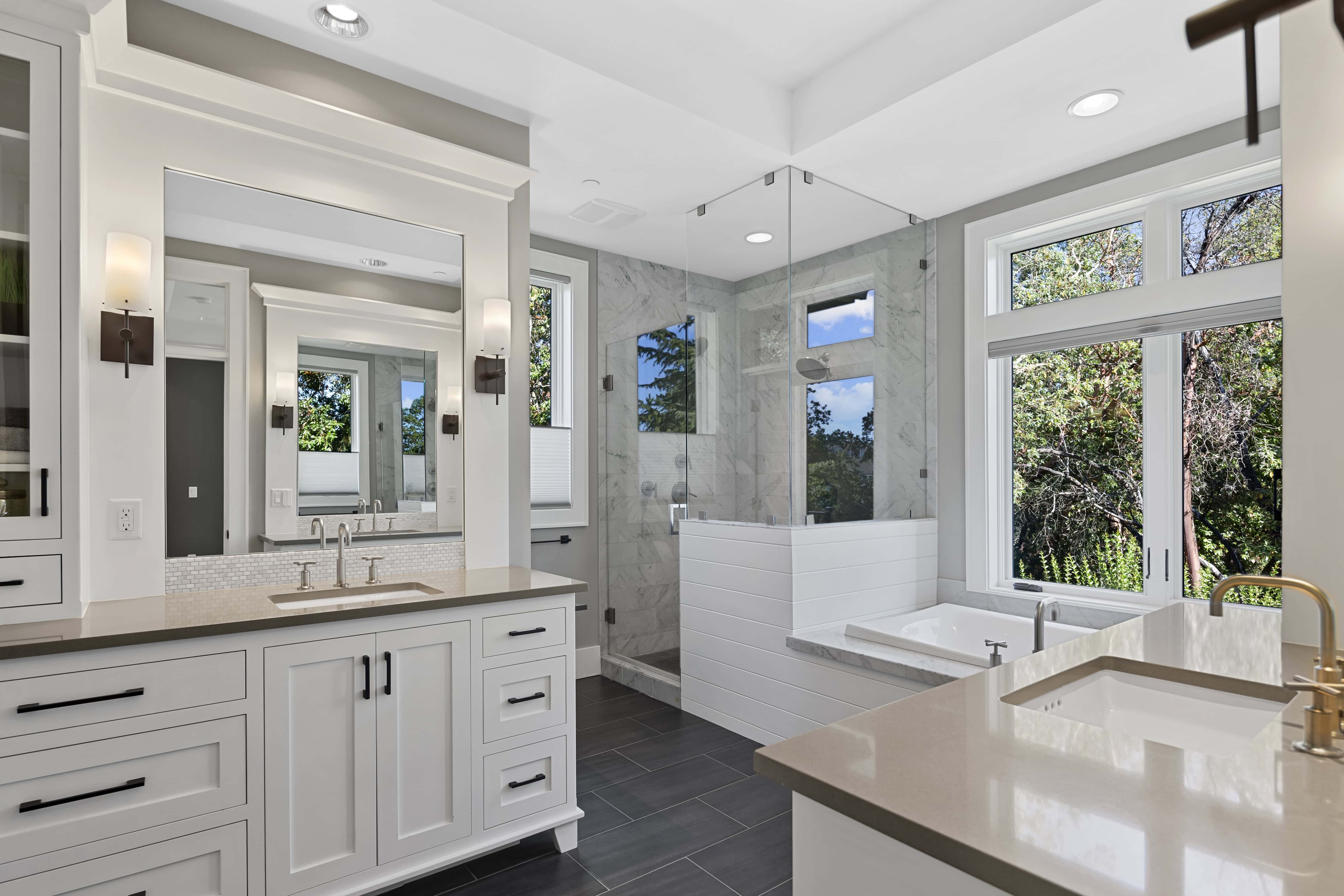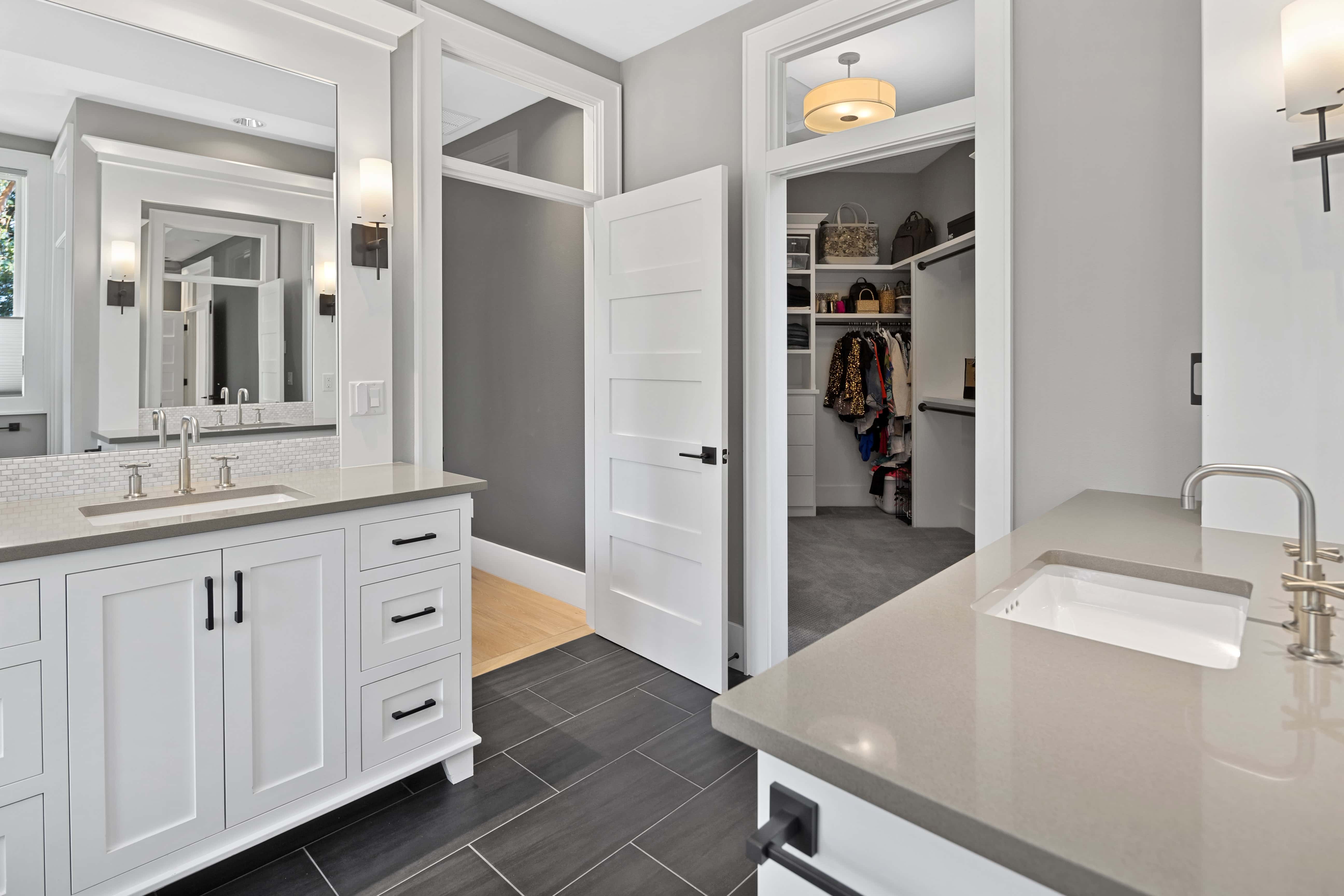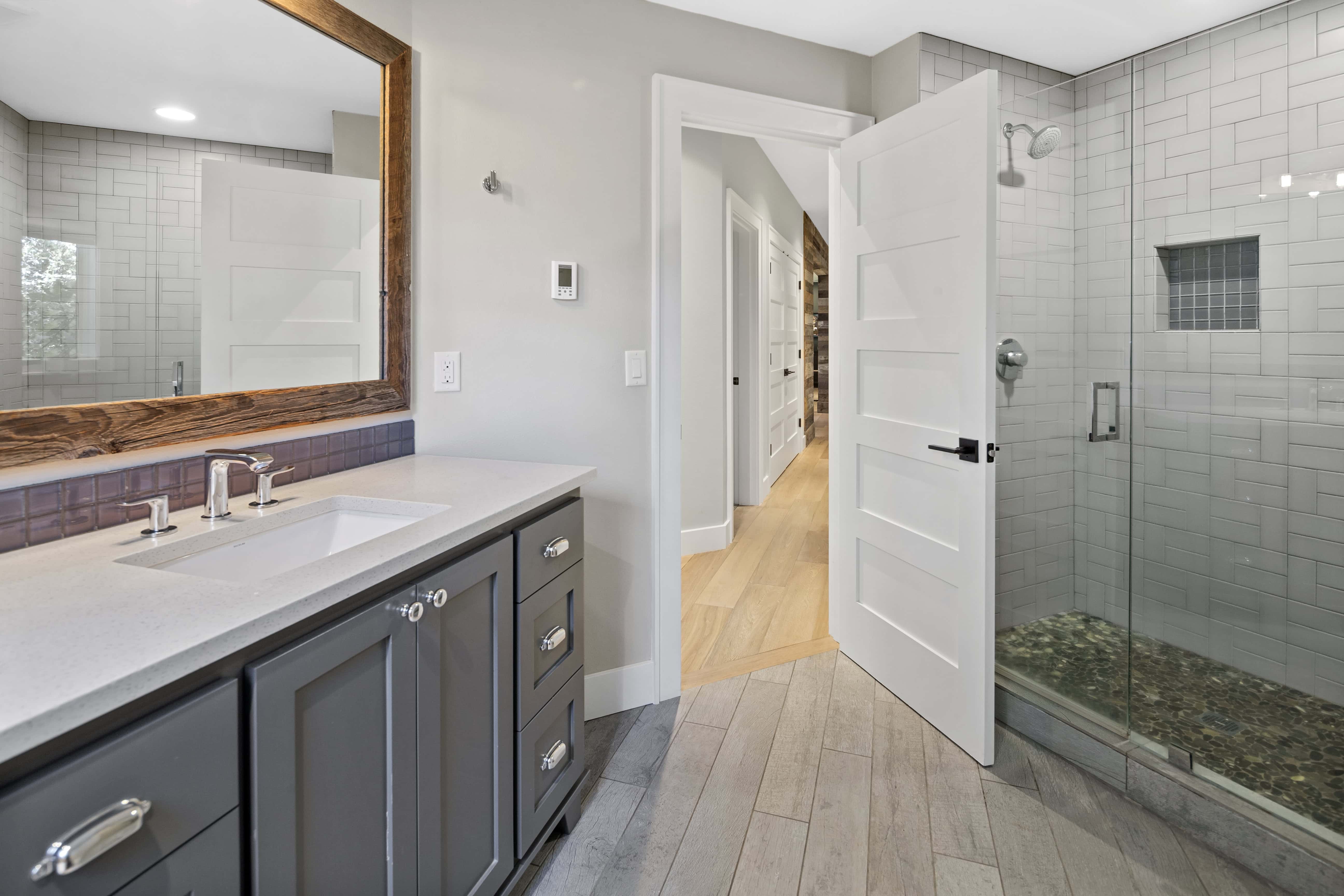 Tucked away for privacy, the primary suite features its own private deck in addition to a spa-like primary bath with dual vanities, heated floors, a deep soaking tub, and a spacious walk-in closet. Additional main floor spaces include a formal dining room, home study and a laundry/mud room conveniently connected to an oversized 3-car garage.